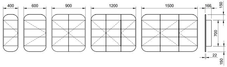 • During installation the cabinet should be fixed with screws through the solid back of the cabinet. The screws should be suited to the stud material and have a pan or counter sunk head. Provide a horizontal row of screws within 100mm vertically from the top of the cabinet at a maximum of 300mm horizontal spacing. The screws closest to the left and right edge of the cabinet should be within 100mm of each side.