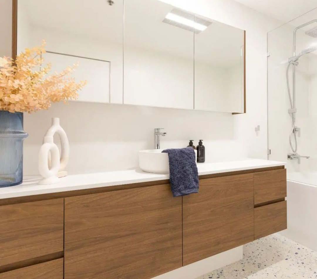 • During the framing and rough in stages of construction ensure that there are sufficient fixings for the mounting of the vanity cabinet. There should be at least two vertical studs for fixing provided not more than 100mm from each edge of the cabinet.