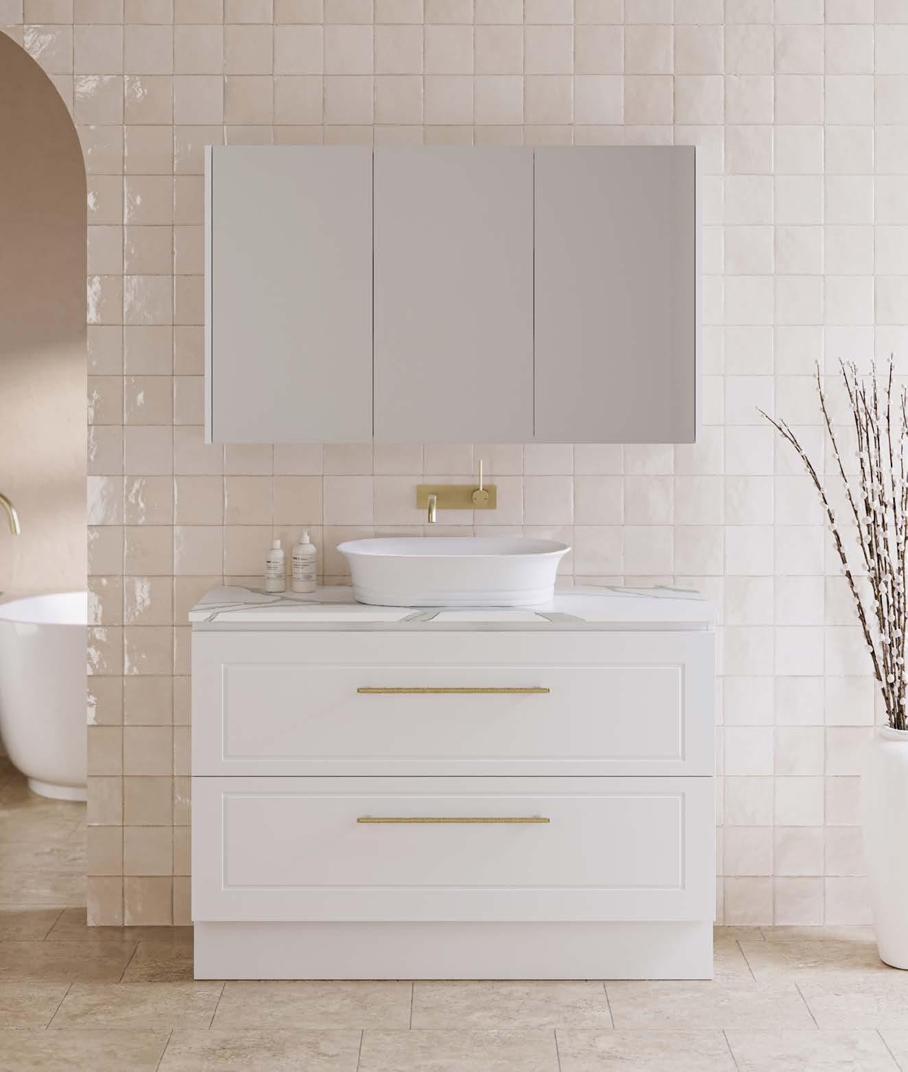 Looking to add a classical touch to your bathroom? The McLaren carries traditional elegance in modern styling with its 6mm deep routed fronts. Choose from any of our standard paint colours or match almost any paint of your choosing to get a vanity unique to you (additional charges apply).