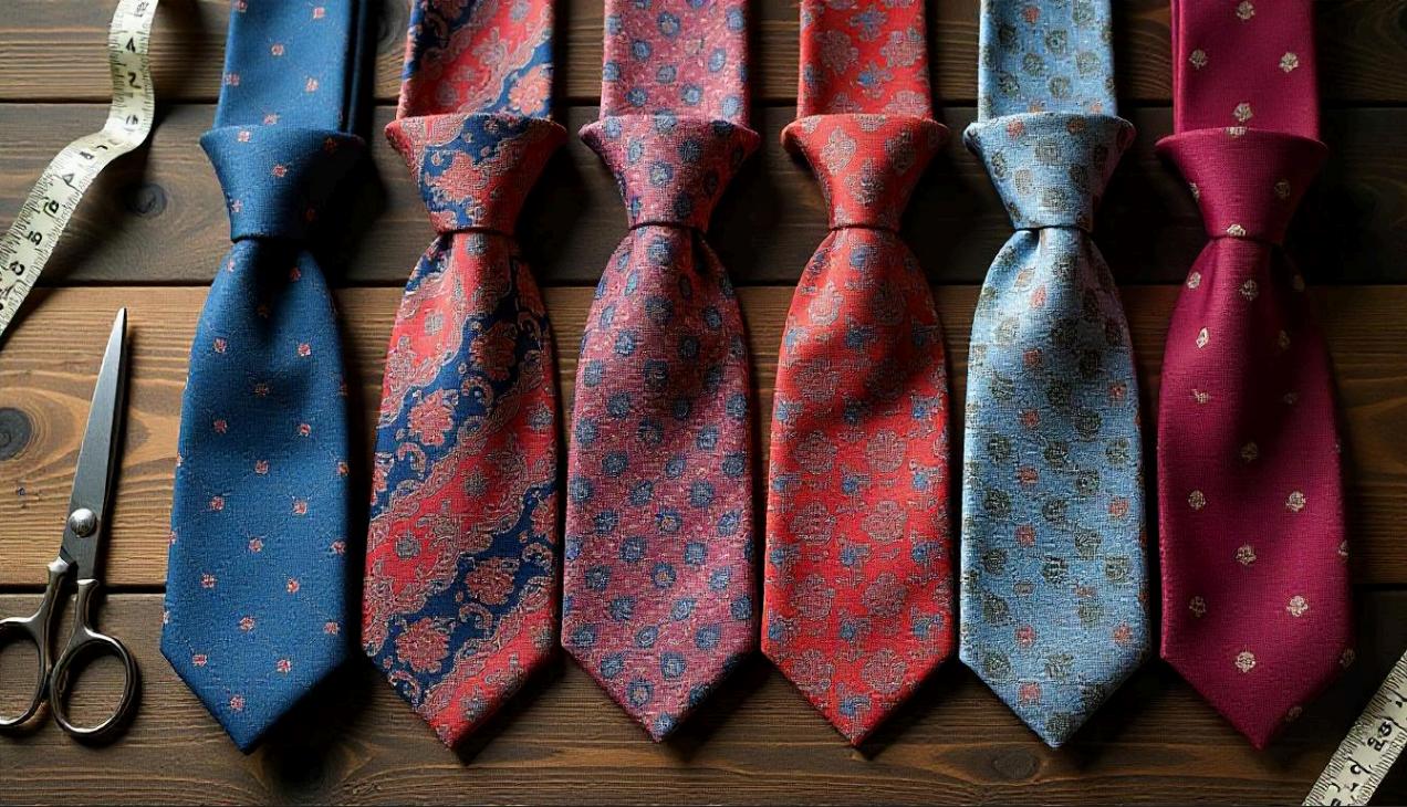 Patterns should remain small or subtle to suit shorter tie lengths and narrower widths.