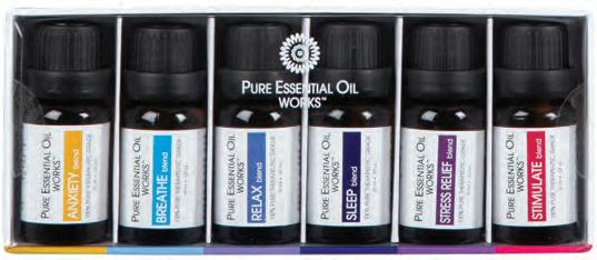 Top 6 Aromatherapy Blend Oil Kit contains our most popular aromatherapy blends and is the perfect kit for essential oil enthusiasts and those looking to explore the wonders and benefits of aromatherapy. Deluxe gift set includes six 10mL bottles of aromatherapy blended oils: Anxiety (lemongrass, sweet orange, Ylang Ylang), Breathe (eucalyptus, peppermint, spearmint, tea tree), Relax (bergamot, jasmine, lavender, rose), Sleep (chamomile, clary sage, lavender, orange), Stress Relief (orange, patchouli, sandalwood, Ylang Ylang) and Stimulate (eucalyptus, lemon and peppermint). 307848