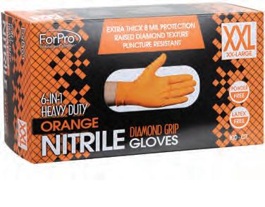 6-in-1 Heavy Duty Orange Nitrile Diamond Grip Gloves are for true professionals that demand the strongest glove for their profession and are up to 3X more puncture-resistant than standard nitrile gloves. Perfect for painters, plumbers, janitors, mechanics, industrial and household use. Extra thick 8 mil nitrile gloves provide the best barrier protection against chemicals, grease, soot, paint and gasoline. Raised diamond grip allows you to use tools that are wet, slippery or hard to grip. Extra thick 9 mil fingertips prevent tearing where you need it most. Iridescent orange for safety. Powder-free, latex-free. 100-ct.