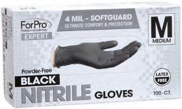 ForPro Expert SoftGuard Black Nitrile Gloves offer ultimate comfort and protection. The textured finish provides slip resistance in wet or dry conditions. Each glove features a beaded cuff and is 4 mil. thick. They are non-sterile, powder-free, latex-free, chemical-resistant and food safe.