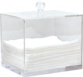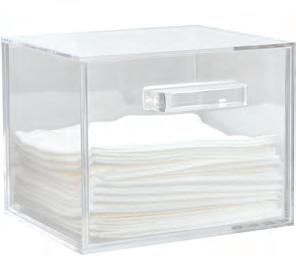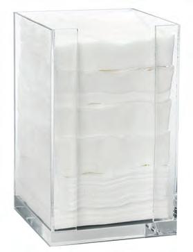 Square Pad Dispenser is made of 1/8” thick durable, break resistant acrylic. The top and side openings allow for quick and easy access to 4” x 4” cotton pads. Excellent to keep on counters and vanities. 7”H x 4.25”W x 4.25”L. 110319