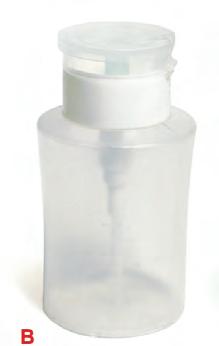 Clear Dispenser Bottle with White Trim Fluid Pump is ideal for acetone, non-acetone, alcohol and most any solvent. Push down on top with cotton and fluid rises to the top. Perfect for travel. 6 oz. 140573