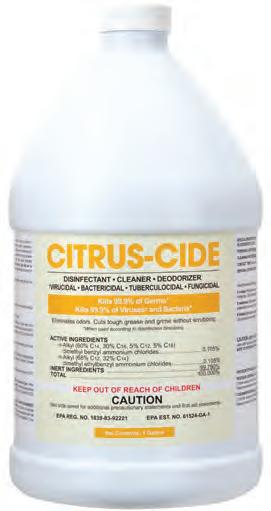 Grade Disinfectant Cleaner cleans and deodorizes in one easy step. Eliminates odors and streak-free finish. Ready-to-use so no mixing required. Works on all hard non-porous surfaces as a disinfectant, bactericide, virucide, tuberculocide and fungicide. Good for all these uses: footbaths, hard surfaces, metal implements (shears, implements, blades), and other surfaces (keyboard, door handles, toilet seat, sink, equipment). For best results, allow treated surfaces to remain wet for 10 minutes and allow to air dry. Fresh citrus fragrance. 111025 32 oz. 111024 Gallon