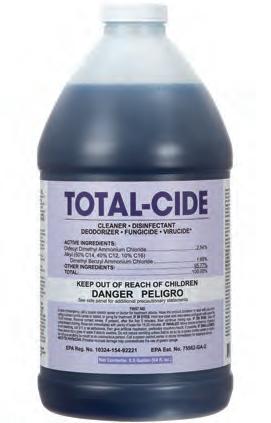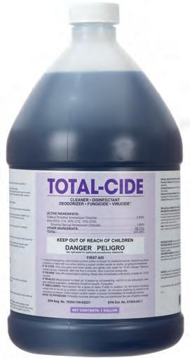 TOTAL-CIDE Hospital Grade Sanitizer & Disinfectant is a powerful, hospitalgrade sanitizer, disinfectant, and deodorizer that provides comprehensive protection against a broad range of harmful pathogens. This bactericidal, fungicidal, and virucidal formula is EPA registered and proven effective against tough contaminants, including athlete’s foot fungus, Aspergillus niger, Hepatitis B & C, HIV-1, and other virus-es. Its advanced anti-rust formulation protects implements, tools, and hard surfaces from corrosion, making it ideal for use in healthcare settings, salons, spas, gyms, and more. In addition to its sanitizing power, TOTAL-CIDE also functions as a deodorizer, effectively eliminating unpleasant odors and leaving a fresh, clean scent. It’s perfect for everyday sanitation of frequently touched surfaces such as keyboards, door handles, toilet seats, sinks, and more. With a simple dilution of just 2 ounces per gallon, it offers a cost-effective solution for maintaining a clean, safe, and odorfree environment, both in professional and home settings.
