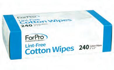 Premium Nail Wipes are lint-free, soft and absorbent. Flexible tab for easy gripping. 1.75” 240-ct. 110324 Lint-Free Cotton Wipes are made of 100% pure cotton gauze. Soft and gentle to the nail plate. 2” x 2” folded opens to 4” x 4”. 240-ct dispenser box.
