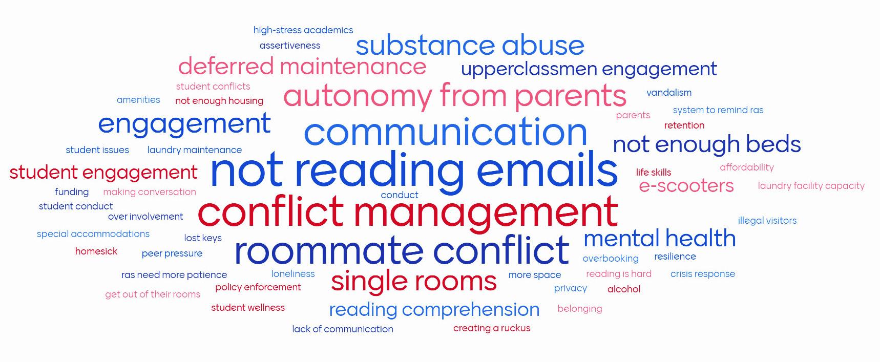 Housing professionals described the ongoing challenge of helping students navigate shared living environments. Many referenced: