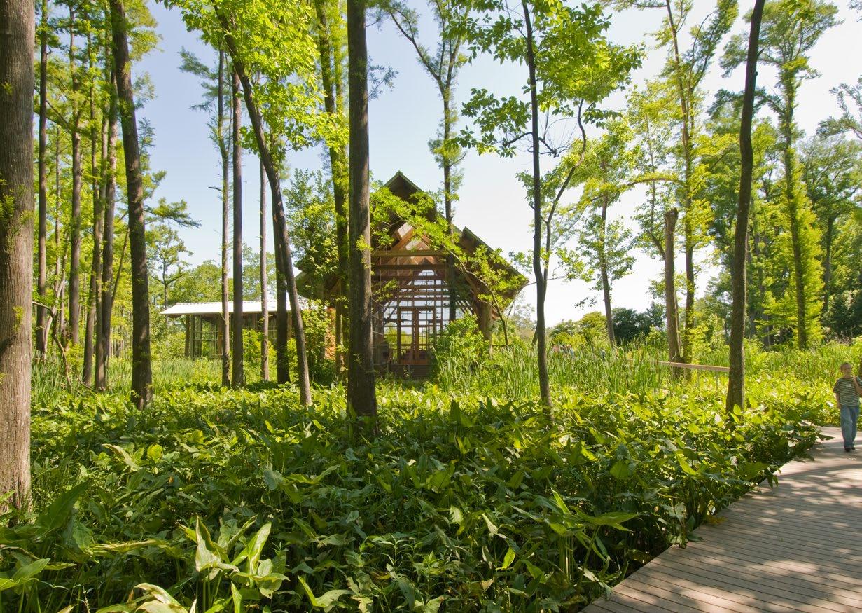 Shangri La Botanical Gardens and Nature Center in Orange, Texas was created by the Stark Foundation as a modern sanctuary that unites nature, education, and community. Spread across 250 acres along Adam’s Bayou, the gardens showcase more than 300 plant species in formal and sculpture rooms, complemented by bird blinds, outdoor classrooms in the cypress swamp, and the interactive Nature Discovery Center. The Orientation Center adds an exhibit hall, Discovery Theater, children’s garden, greenhouses, café, and Garden Store. Designed with sustainability in mind, visitors travel by boat to remote classrooms to preserve the natural environment. Built by Beck, Shangri La achieved a milestone as the first LEED NC Platinum project in Texas and the 50th in the world.