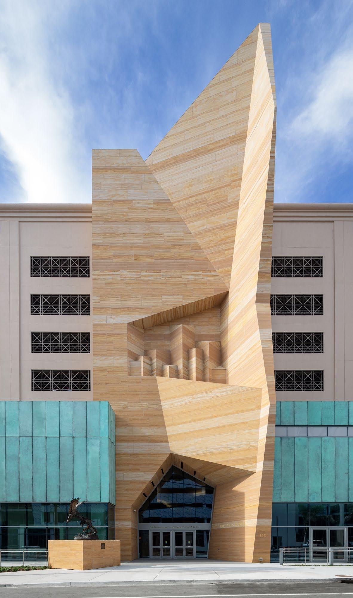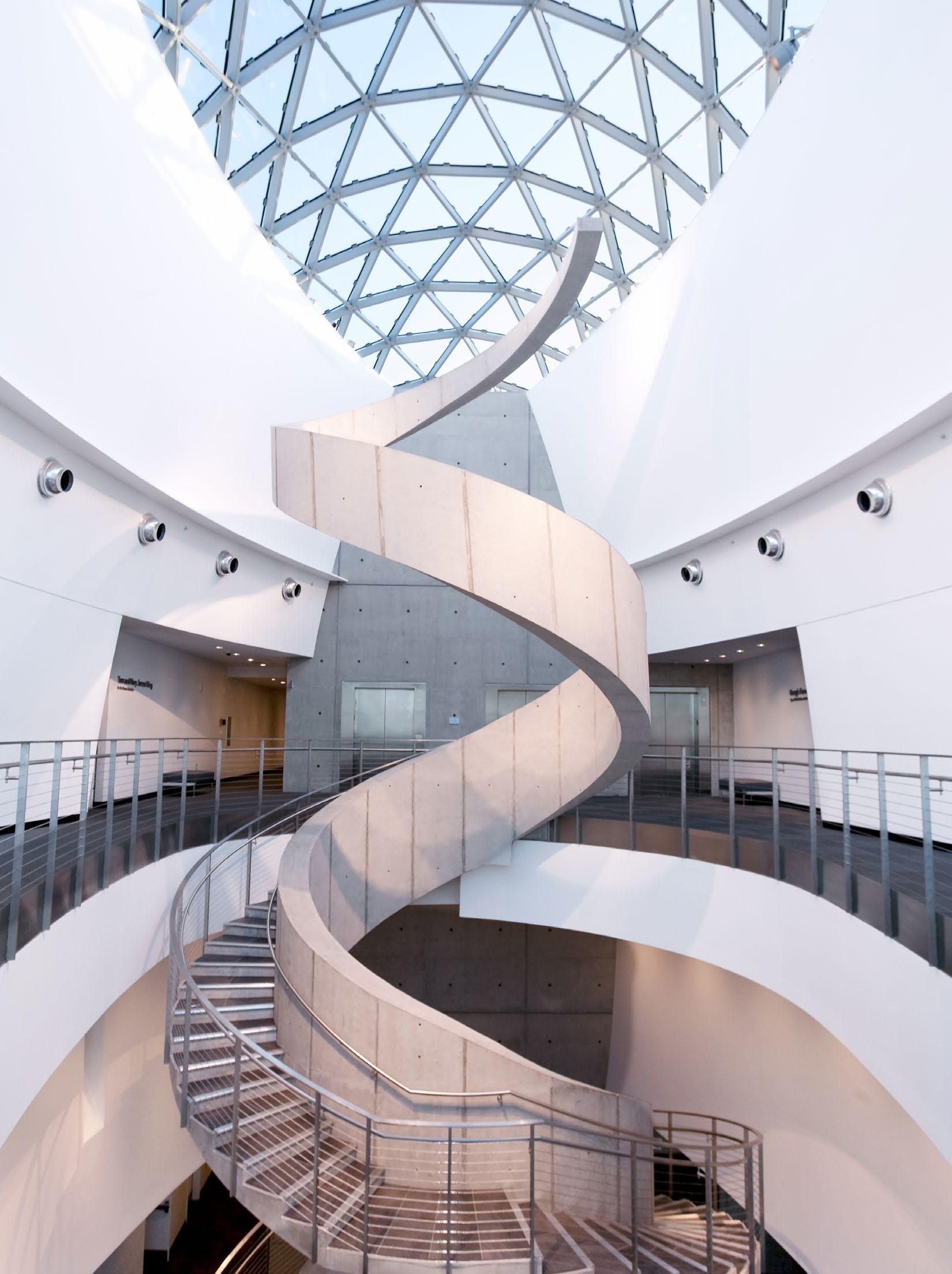 As flamboyant as the artist himself, the new 66,400 SF Dali Museum on St. Petersburg’s waterfront doubles as exhibition space and protects the world’s largest Dali collection outside Spain. Designed by Yann Weymouth with HOK, the hurricane-resistant structure features 1,062 unique triangular glass panels forming the iconic ‘Igloo’ and ‘Enigma.’ The three-story building includes galleries, offices, and public spaces, offering a stunning view of the Bay