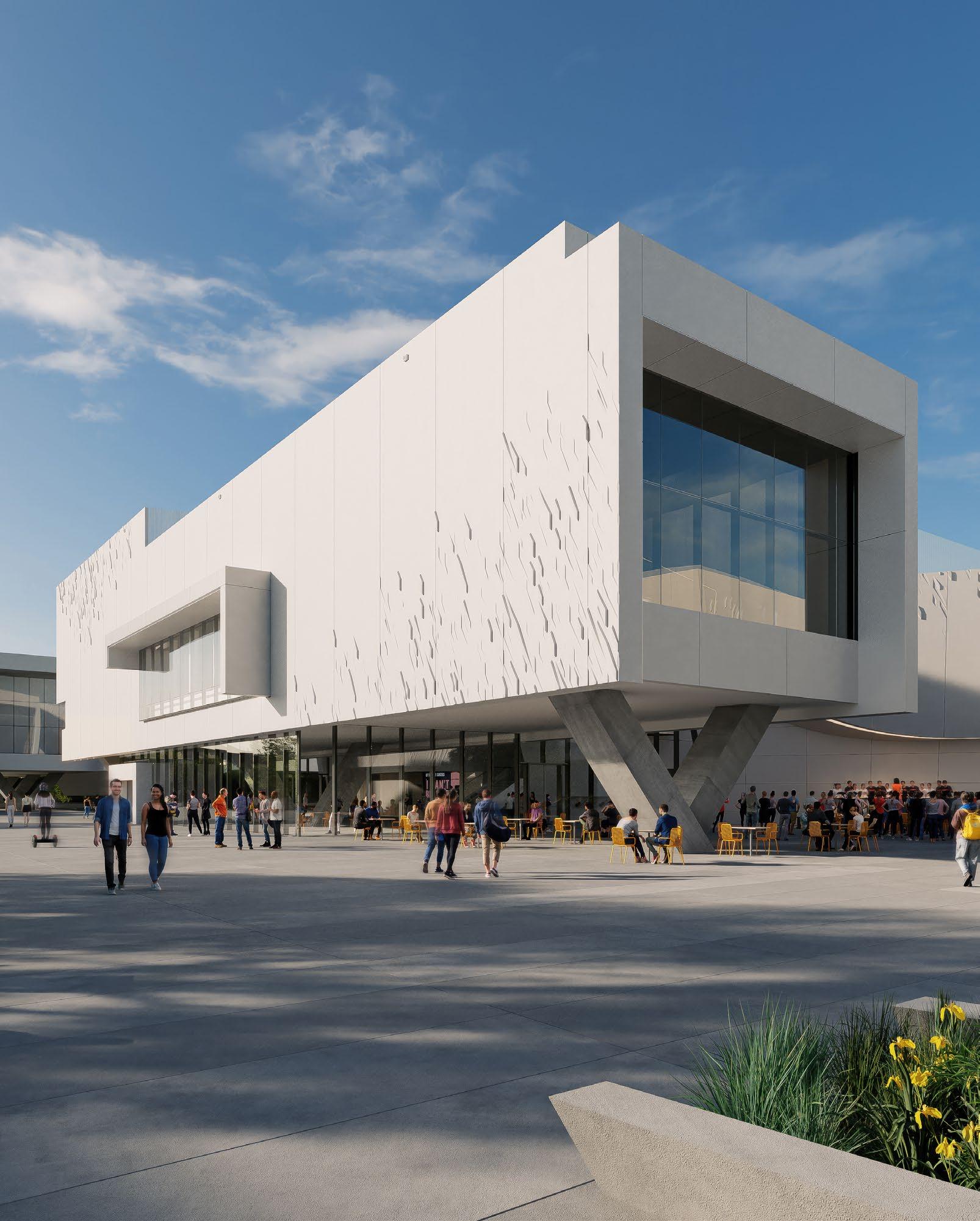 “The new performance hall will be a creative hub, elevating the arts with a world-class stage. Designed for interconnectedness, it seamlessly unites classrooms, rehearsal spaces, and studios.”