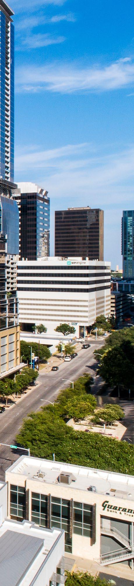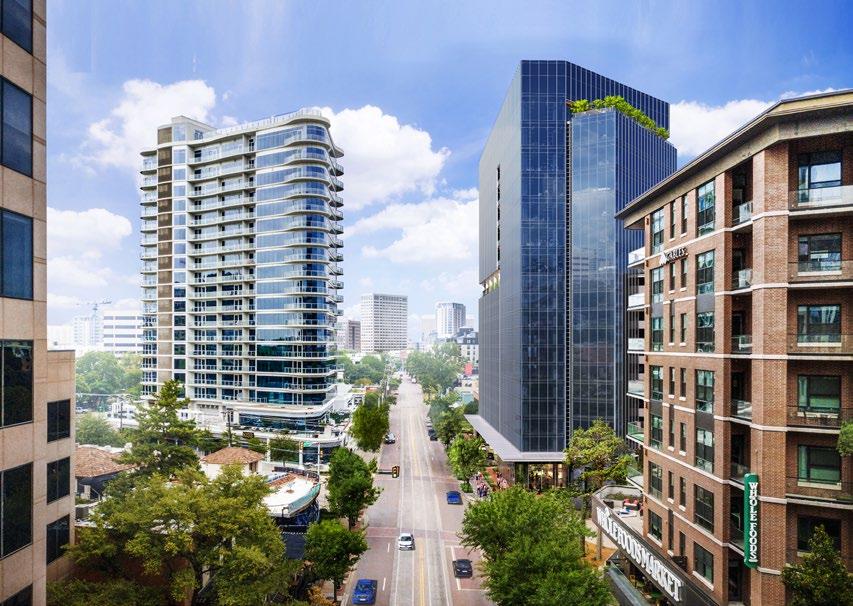 The design incorporates a sky terrace and a habitable green roof that houses a stateof-the-art fitness center within a glass box, offering sweeping views of the lake and downtown Austin. Recognized as Austin’s ‘smartest’ building, RiverSouth uses cuttingedge automation systems that provide real-time feedback to enhance tenant comfort, health, and security. Sustainability was central to Beck’s vision, earning the project a Platinum Wired Score, LEED Gold certification, and an Austin Energy Green Building 3-Star Rating.