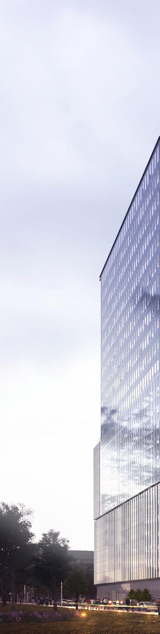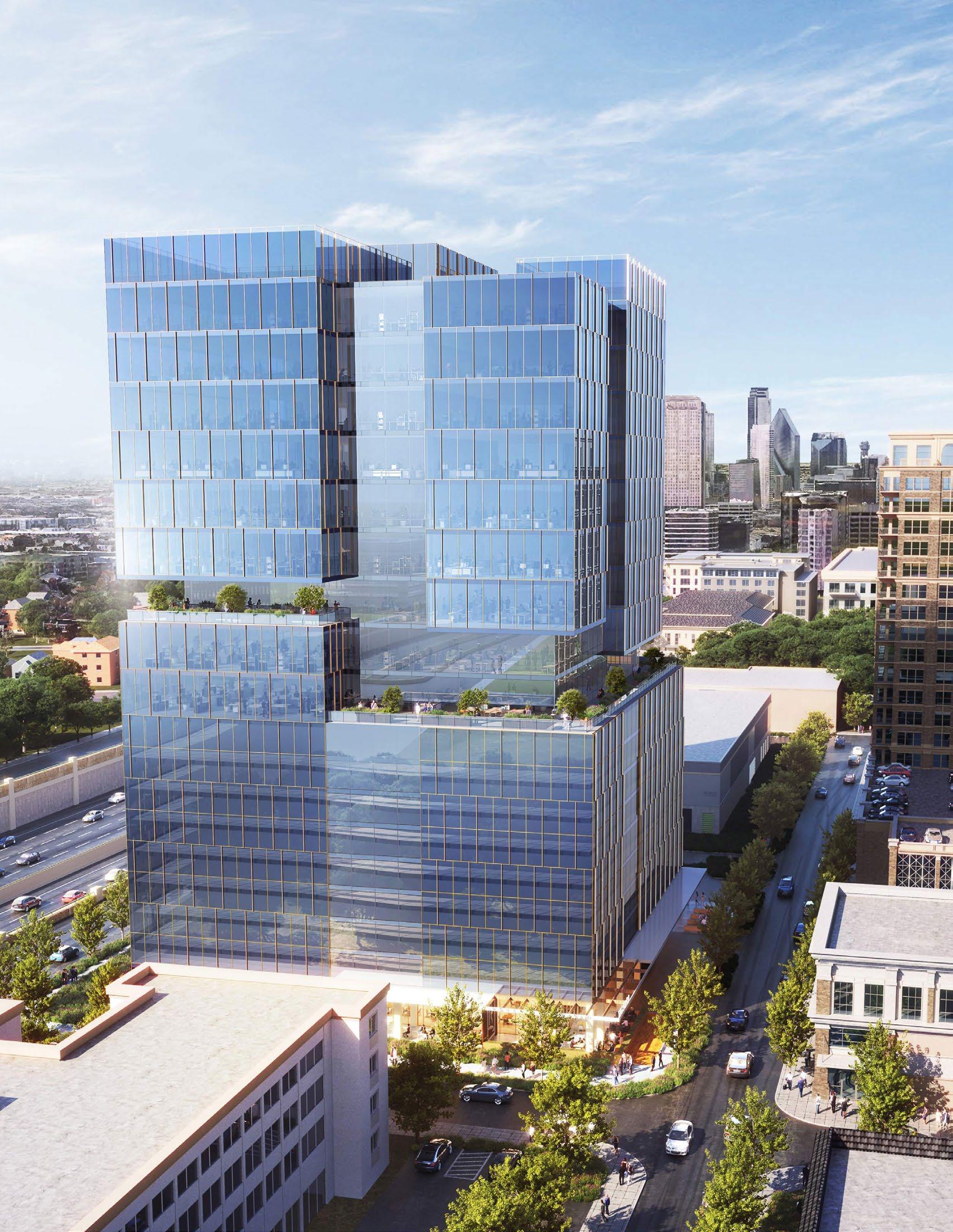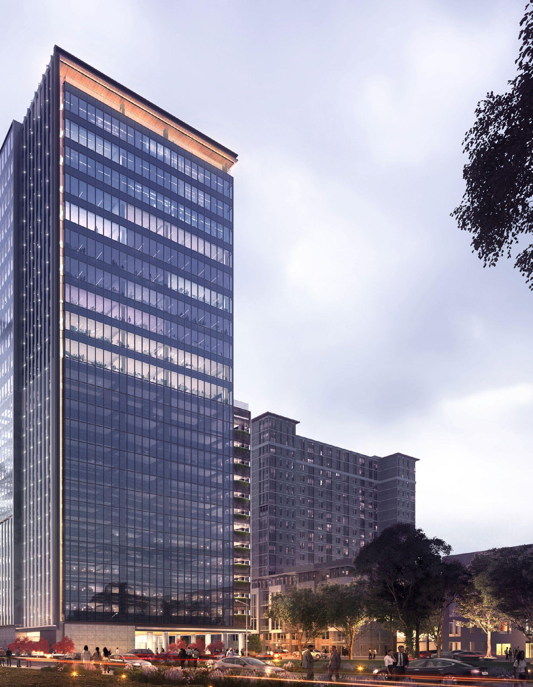 755,000 SF total, 330,000 SF office space, 24-story class AA office (11 office floors over 13 parking), over 1,000 parking spaces, lobby, fitness room, flex rooms for conferencing with operable walls for indoor/ outdoor events, landscaped terrace, LEED certification