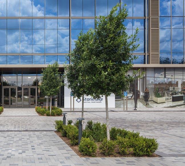 West Campus: 158,000 SF, office complex featuring two four-story and one six-story building. Pursuing LEED Silver certification and Fitwel