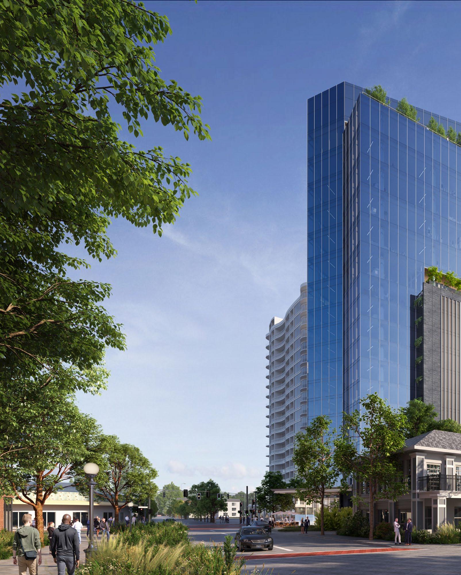 Urban Valley, redefining downtown. With a dynamic series of stepped pedestrian terraces, creating a vibrant public space that has long been missing. These terraces, featuring retail and dining, will be the heart of a transformative development.