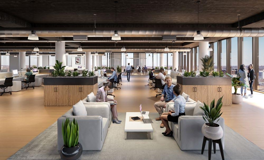 The tower features 10-foot ceilings, ultra-efficient floor plates, state-of-the-art security, and destination elevators, setting a new standard for workplace environments. The fifth floor boasts an outdoor landscaped garden, a fitness center, and a conference center, while the ground floor offers 50,000 square feet of retail, including luxury dining destinations like Del Frisco’s Double Eagle Steakhouse.