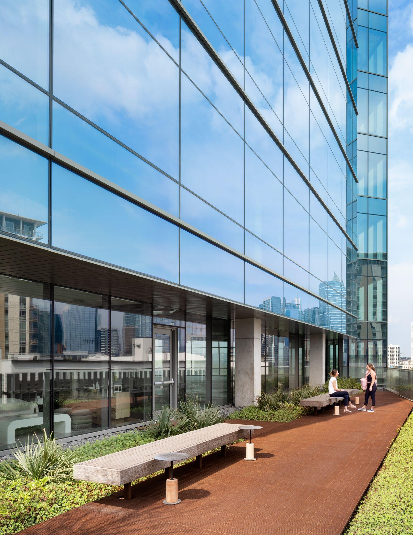 350,000 SF, Class AA office, retail and restaurant space, five-level below-grade parking, sky terrace, a green roof with fitness center, bike valet and trail connections. LEED Gold certification, AEGB 3-Star rating Program