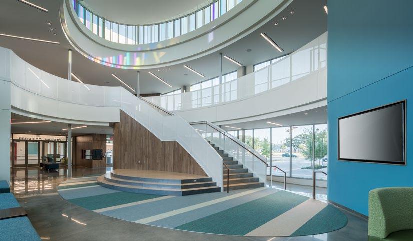 Established in 1868, First Baptist Church of Dallas grew over the next 140 years to become the largest landowner in downtown with extensive facilities, including its historic sanctuary constructed in 1891. Beck was selected as architect for First Baptist’s expansion project. Significant portions of the property were programmed as park and community-focused spaces, with the mission to create an urban oasis serving the city core. For a church committed to setting new standards for ministry excellence, stateof-the art worship and education facilities were critical, set within a campus that would be transparent and welcoming. Foundational to the new campus plan was the creation of First Baptist’s first new worship space, a 3,000 seat worship center, since 1891. Celebrating the church’s long ministry legacy, the historic sanctuary was preserved. Significant portions of the old educational facilities were removed and recreated as an efficient five-story education center. Parking capacity was also expanded and made more efficient through removal of surface lots and an older garage, and the addition of a new 500-car garage.