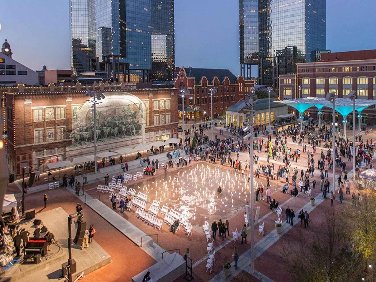 An open-air stage for Fort Worth life, where music, fountains, and community come together under the Texas sky.