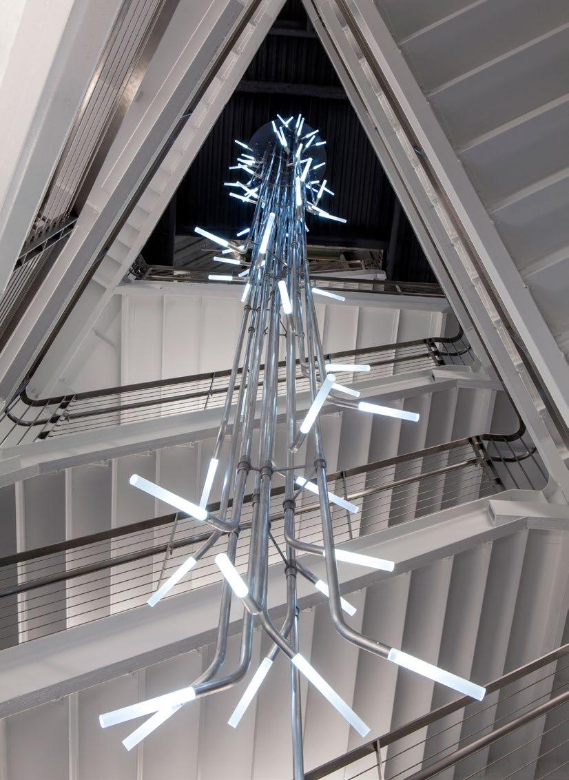A 30-foot mirrored globe with an interactive light and sound experience featuring 300,000 LEDs.