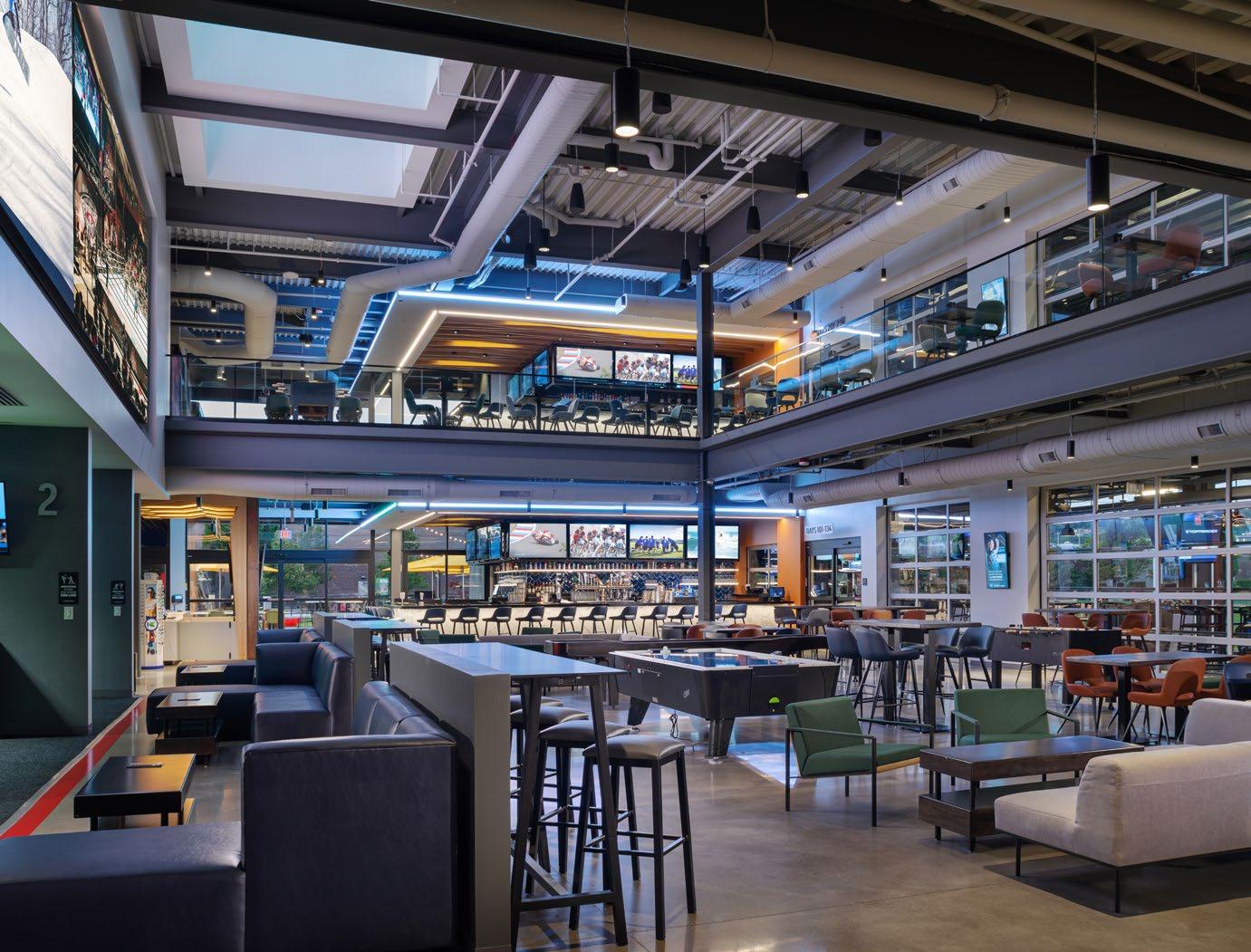 Designed by Beck as a prototype for Topgolf’s entertainment facilities, this 65,000-square-foot, three-story venue is located at 1411 Warner Street in South Baltimore’s growing entertainment district near Horseshoe Casino and M&T Bank Stadium. This state-of-the-art facility offers 90 climate-controlled outdoor hitting bays, Topgolf’s proprietary Toptracer technology, and three indoor virtual golf simulators, providing a modern golfing experience accessible to players of all skill levels.