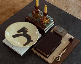 The world is grounded in equestrian influence, private clubs and generational wealth, where everything carries weight, history and permanence. The palette leans darker and richer. Deep mahogany, saddle leather, aged brass, oxblood, and forest green create a sense of intimacy and depth. Materials are not just luxurious, they are worn in, broken in, and meant to last. Leather is central. It shows up in trays, books, upholstery and texture, bringing warmth and authority. This is not minimal and it is not playful. It is masculine, structured and quietly powerful, with a sense that nothing is new, yet everything is exceptional. To curate a coffee table in this direction, think like you are styling a study rather than a living room. Start with a foundation of substantial, heritage-feeling books. Biographies, fashion, travel, or equestrian themes work best, ideally in darker tones or with textured covers. Layer a leather tray or box to anchor the composition, then add weight through materials like brass or wood. An equestrian nod, such as a horse-inspired object or vintage accessory, subtly reinforces the narrative. You can include a cigar box, matches, or a low glass vessel to introduce that club-room energy. Keep the palette cohesive and grounded. Nothing should feel bright or overly styled. The result should feel collected over time, deeply personal and reflective of a life lived with taste, access, and legacy.