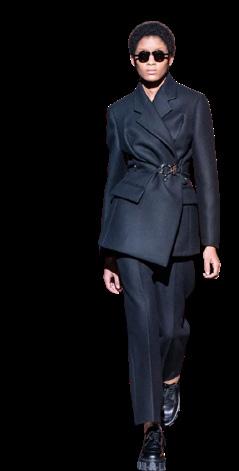 The aesthetic is clean yet commanding, rooted in a neutral palette of black, ivory, camel and soft grey, with an emphasis on sharp lines and impeccable tailoring translated into interiors. Every element feels considered and elevated, with a quiet confidence that does not rely on excess or embel lishment. Materials are sleek and luxurious. Think polished stone, smooth leather, matte ceramics, and subtle metallic accents. The overall effect is modern, architectural and effortlessly sophisticated, where less is not just more, it is intentional. To curate a coffee table inspired by this direction, approach it with discipline and clarity. Begin with a tightly edited selection of objects, favoring quality over quantity. A stack of monochromatic books, ideally in black, white, or tonal neutrals, creates a strong foundation. Introduce one or two sculptural pieces, such as a minimalist vase, a geometric object, or a refined tray in marble or metal, to add structure and interest. Keep any organic elements subtle. A single stem or understated greenery is enough. Symmetry or near-symmetry works well here, reinforcing the sense of order and control. The final composition should feel calm, elevated, and impeccably curated, where every object earns its place and contributes to a sense of polished, modern
