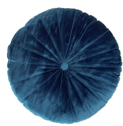 100% polyester velvet. Tufted button in cushion centre. 40 cm.