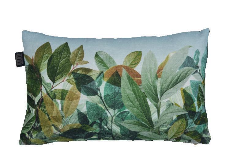 Front: 100% cotton slub, back: 100% cotton. Digital on front and uni dyed back with cordpiping. 30x50 cm.