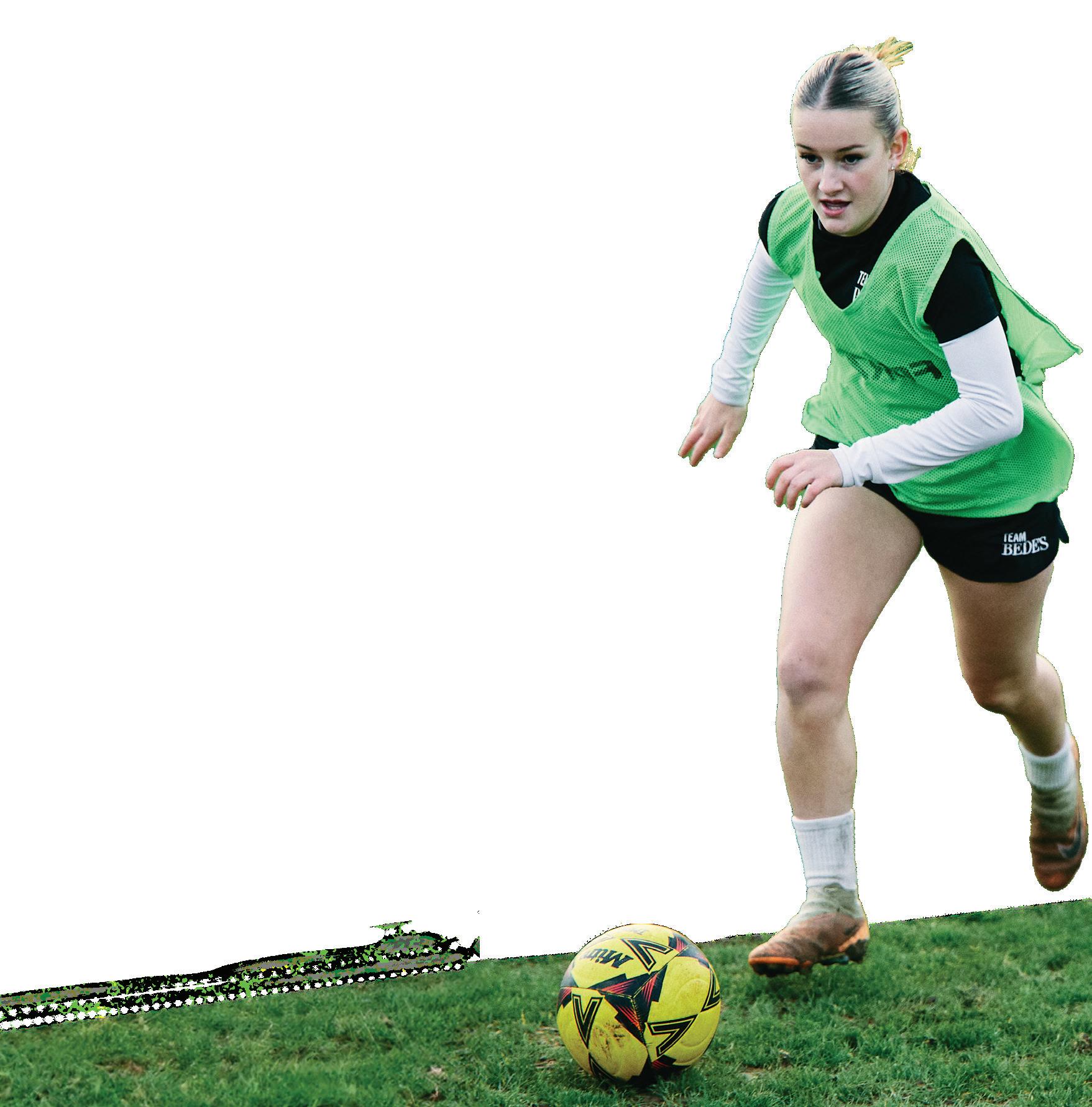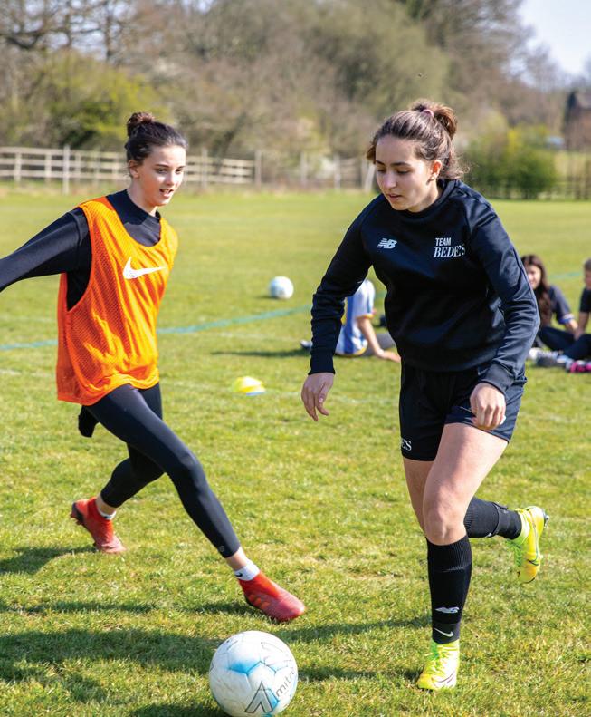 Bede’s offers a comprehensive, yearround Girls’ Football programme. The inclusive football programme features both performance and participation teams that take part in ISFA leagues, national tournaments (ESFA, ISFA) and County Cups, ensuring extensive match experience. The Girls’ Football Academy provides players with specialised coaching, fitness testing and individual development plans, supported by UEFA B and FA Youth Advanced coaches.