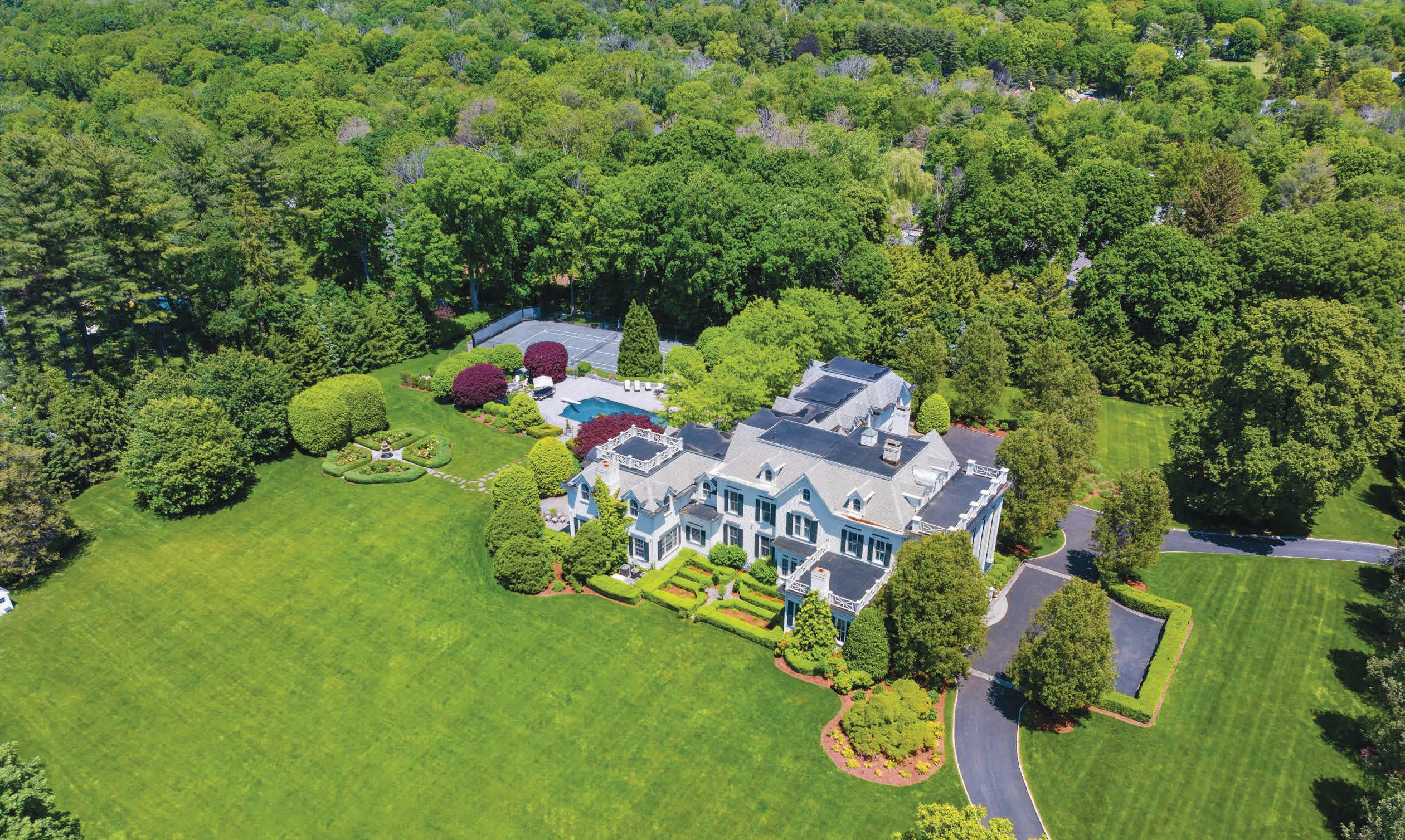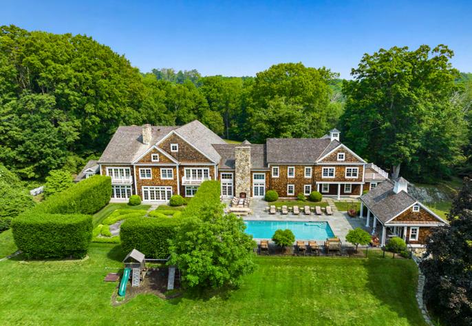 New Canaan, CT • Welcome to Pemberly Hill, a truly exceptional historic home of unparalleled grandeur and sophistication. Boasting 8 bedrooms and over 14,000 square feet of living space on 4+ acres of private grounds on desirable Brushy Ridge. This magnificent property is a true masterpiece. Originally built in 1880, this historic home has been thoughtfully reimagined and renovated to the highest standards, seamlessly blending its rich history with modern luxury. The result is an extraordinary residence that offers exquisite attention to detail and seamless flow of space. From the stunning foyer with a grand staircase to the spacious and inviting living and dining areas, every room is beautifully appointed with soaring ceilings of over 11 feet and perfectly designed for modern living. The light-filled and spacious gourmet kitchen features top-of-the-line appliances, a large center island, custom cabinetry, walk-in pantry, and wet bar. The luxurious primary suite is a true sanctuary, offering a spacious and serene retreat with a generous spa-like bath, 2 walk-in closets, a private sitting room, and breathtaking views of the property. 7 additional bedrooms are perfect for hosting family and friends. Step outside and discover over 4 acres of beautifully landscaped grounds with lush gardens, a sparkling pool, a Har-Tru tennis court, and multiple outdoor seating areas for relaxing and entertaining. A rare opportunity to own a piece of history in one of New Canaan’s most desirable locations. 262BrushyRidge.com