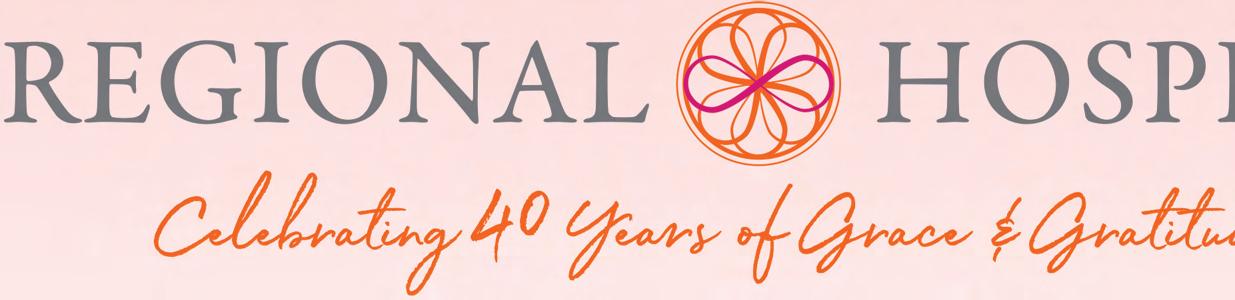 Regional Hospice is a 501(c)(3) non-pro t organization. Every dollar raised through fundraising helps provide our patients with the highest quality end-of-life care and supports community outreach and education. We take care of all patients, regardless of inability to pay, and supplement costs for patients that are not covered by the standard medicare bene t. We are grateful for the generosity of our donors and volunteers that support our sta , hospice care and related programs.