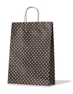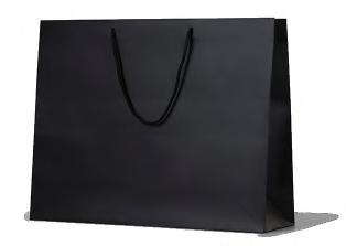 Our black on kraft paper bags are made from FSC-certified paper and come with twisted black paper handles. Made of thick (140gsm) kraft paper with a matte varnish finish, these bags are strong and come in 6 versatile sizes. They are 100% recyclable and available for custom print.