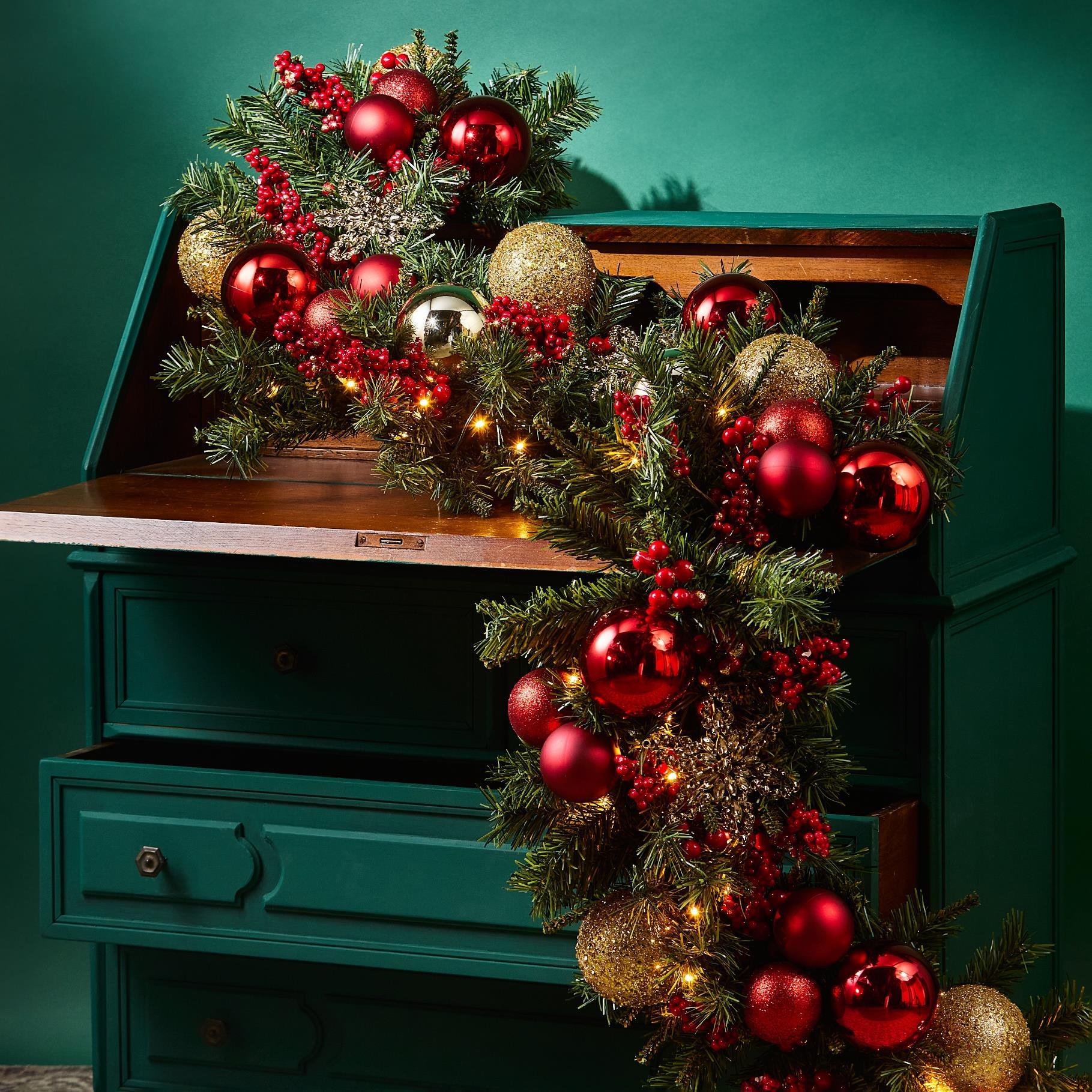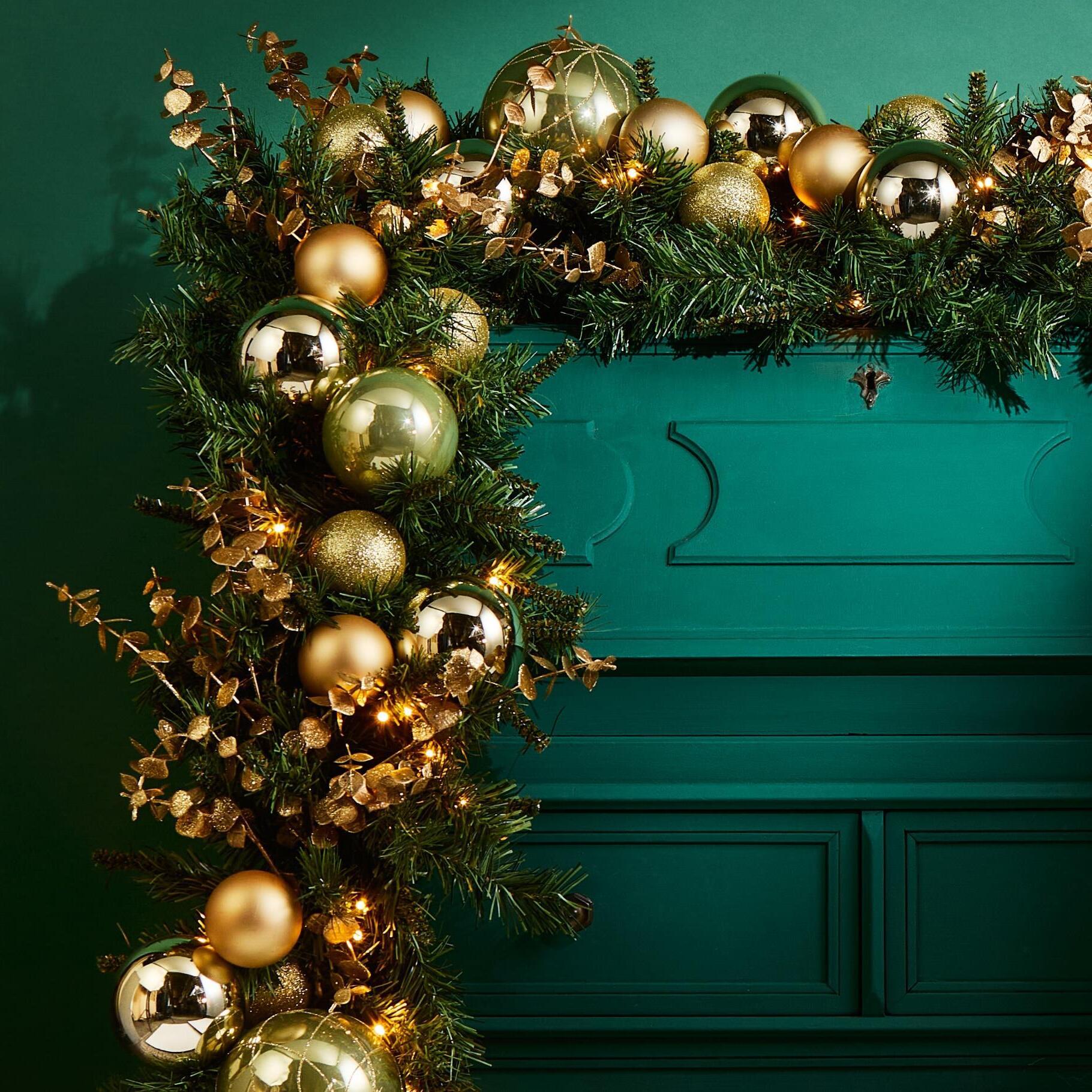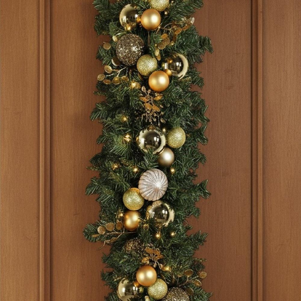 Gedecoreerde dennenrank Delightfull Gold, 270cm met 80 lampjes kant en klaar geleverd in opbergdoos 139,00