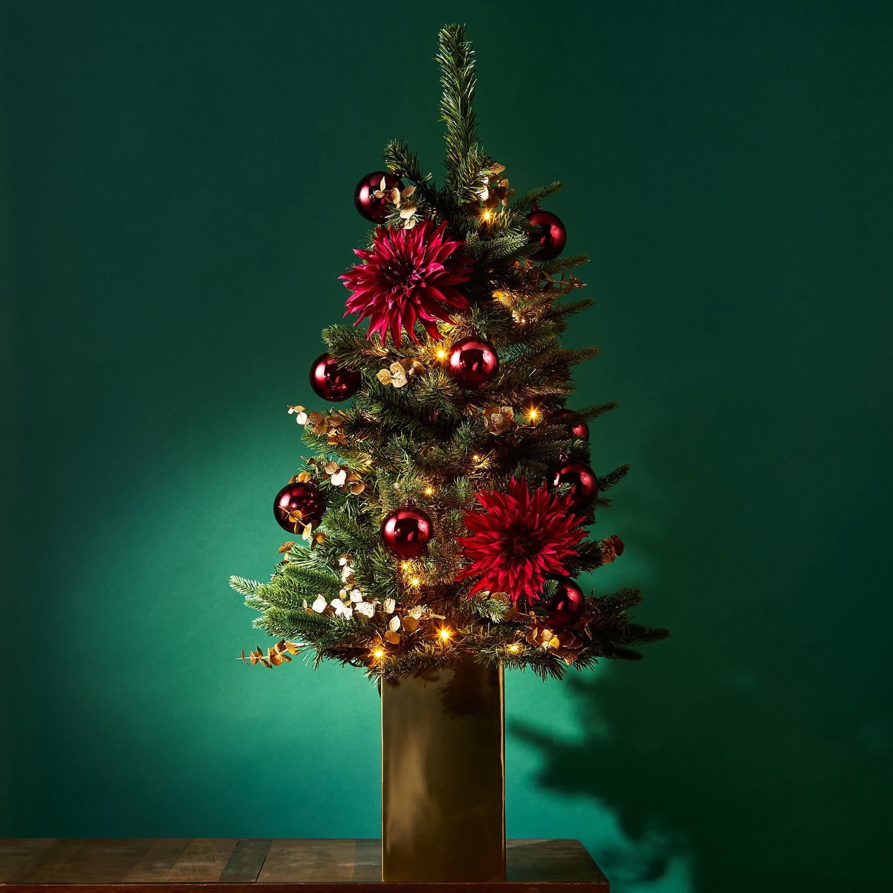Gedecoreerde kerstboom Burgundy met 56 LED lampjes in gouden pot 100cm geleverd inclusief handige opbergdoos 159,00