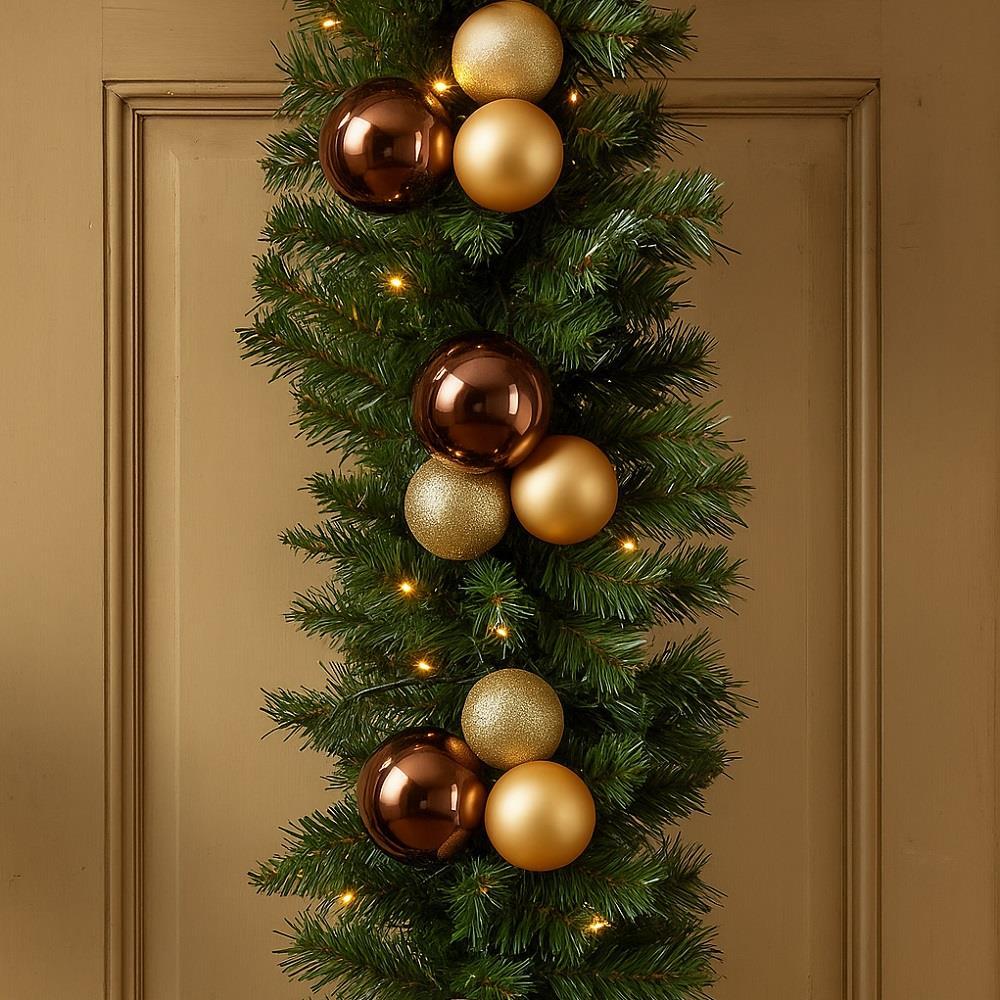 Gedecoreerde dennenrank Gold Copper 270cm met 80 LED lampjes geleverd in opbergdoos 139,00
