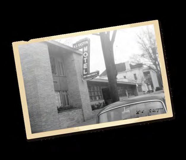 The A.G. Gaston Motel was built by prominent African American businessman and entrepreneur Arthur George Gaston and opened its doors in 1954 to provide first-class lodging and accommodations to African American travelers. In the early ‘60s, leaders from the Southern Christian Leadership Conference (SCLC), such as Dr. Martin Luther King, Jr., Ralph D. Abernathy, and Rev. Fred L. Shuttlesworth, stayed in Gaston’s motel to plan actions in fighting segregation and racial discrimination. They used Room 30, which became known as their “War Room.” These leaders believed ending segregation in Birmingham would springboard similar movements across the country. There, they held press conferences and other events that were widely broadcast and documented at the time. The building is now recognized by the Birmingham Civil Rights National Monument for its place in history and is co-owned by the National Park Service (NPS) and the City of Birmingham. Pictured opposite page, bottom, the site was recently renovated and restored, with its ribbon-cutting ceremony commencing June 2022, an event attended by Rep. Terri Sewell (AL-7), Secretary of Transportation Pete Buttigieg, and Birmingham’s Mayor Randall Woodfin.