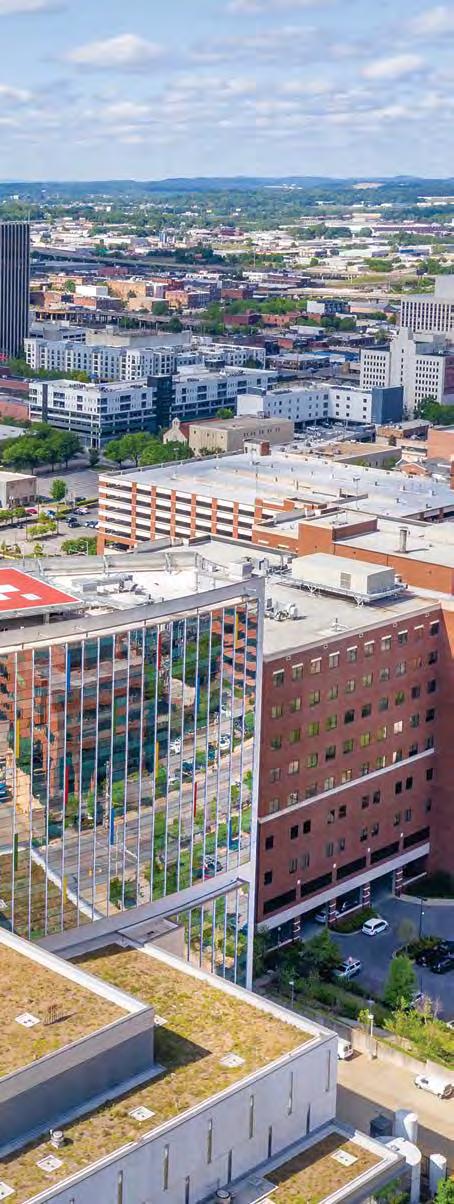 Pictured opposite page, bottom, the original Greyhound Bus Station opened on 19th Street North in downtown Birmingham in 1949. The building fell into disrepair after it was closed in 2017 when bus service moved to the city’s new intermodal transportation facility. In 2019, local real estate developer Mike Mouran purchased the property and began a $14-million renovation, converting it into multi-use office space.