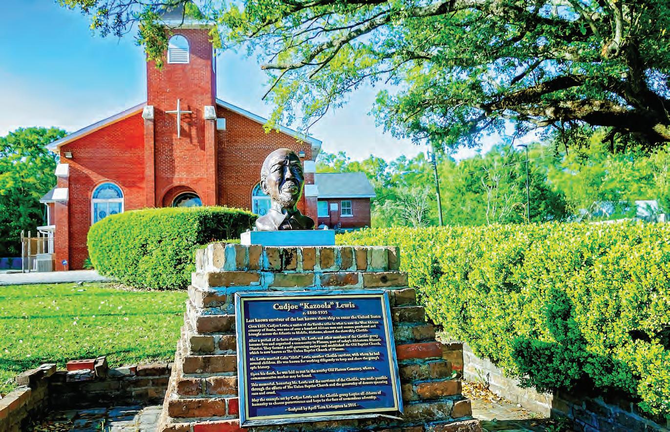 Africatown,itselfaNationalRegisterhistoricdistrictofnationalsignificance,isanimportanttouchpointincollectiememory. above: AbustofCudjoeKazoola Lewis,thelastknownsurvivoroftheslaveshipClotilda,standsinfrontofUnionMissionaryBaptistChurchinAfricatown.