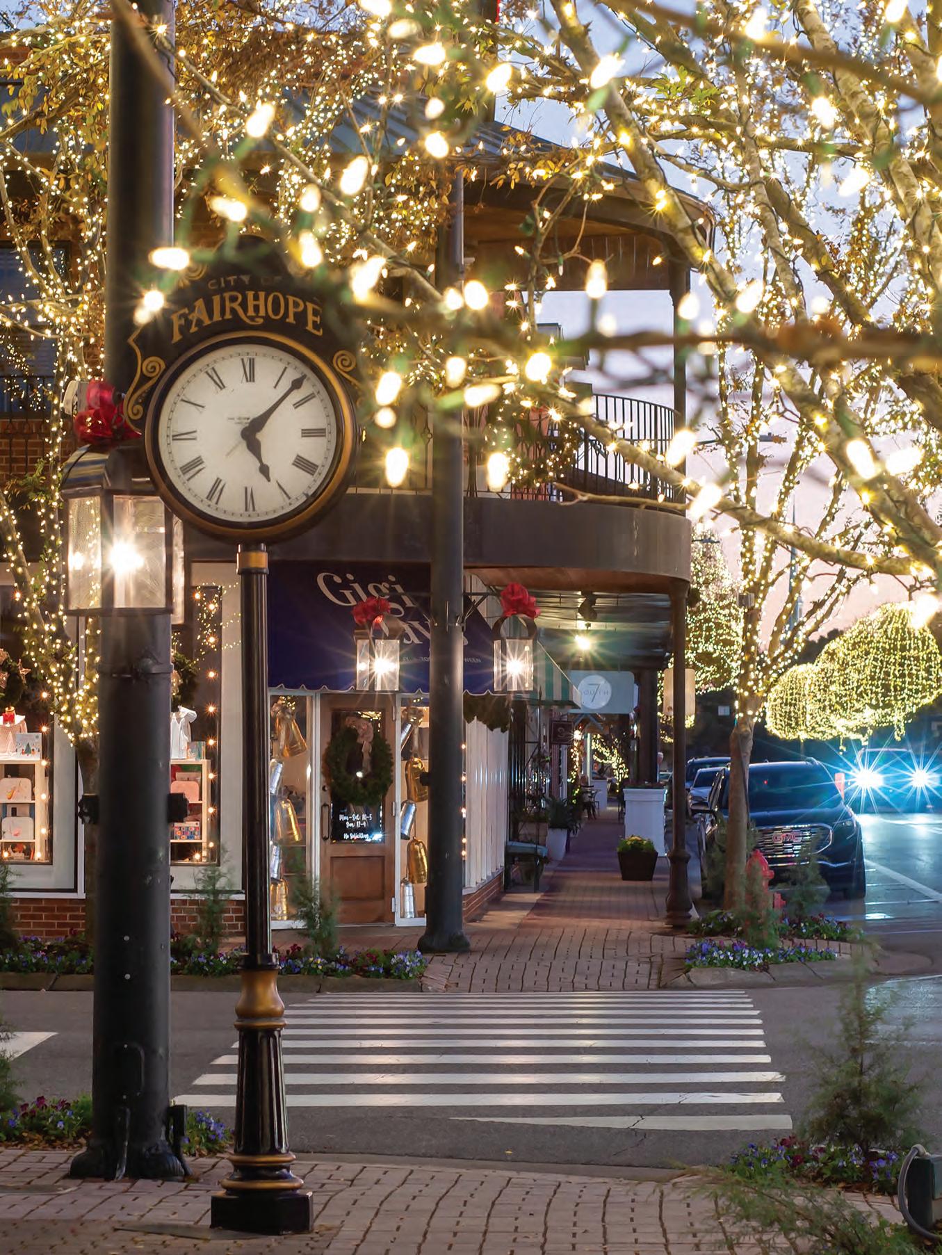 The annual Fairhope Arts and Craft Show doubles the city’s 20,900 population during the annual four-day spring event, and the city’s Mardi Gras celebrations and lighting of the Christmas tree draw people statewide.