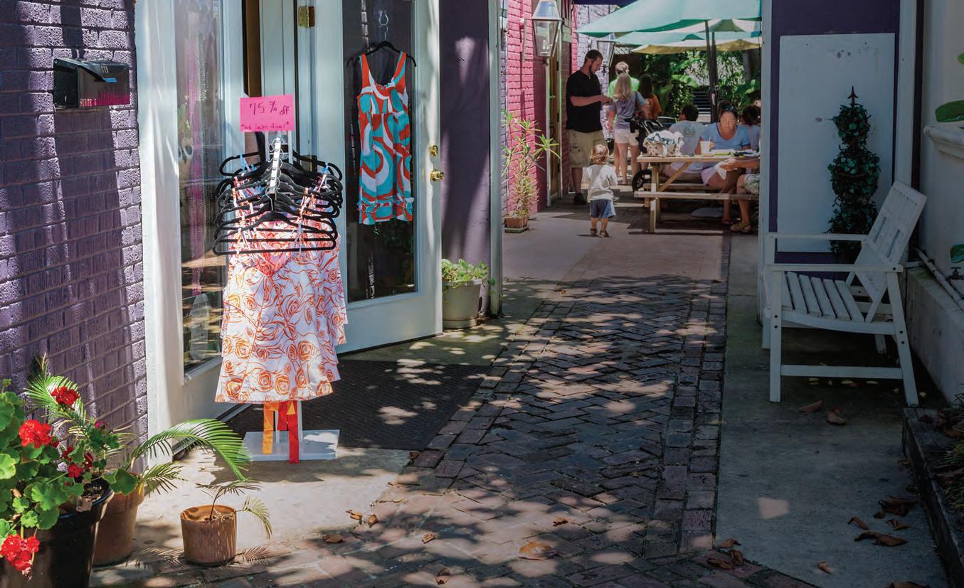 Approximately 120 destinations for shopping, browsing, and admiring line Fairhope’s brick sidewalks, streets, and winding alleyways. Art galleries, boutiques, apparel, sidewalk cafes, and indoor dining are at every turn. Fresh flwers are everywhere, hanging from light poles, street-side displays, and store window sills.