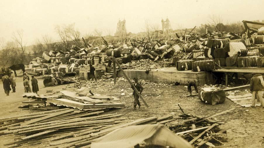 navigation. Then they built docks, opened businesses, and carved roads to allow crops and goods from distances away to be brought here and shipped south on flat-bottom boats.