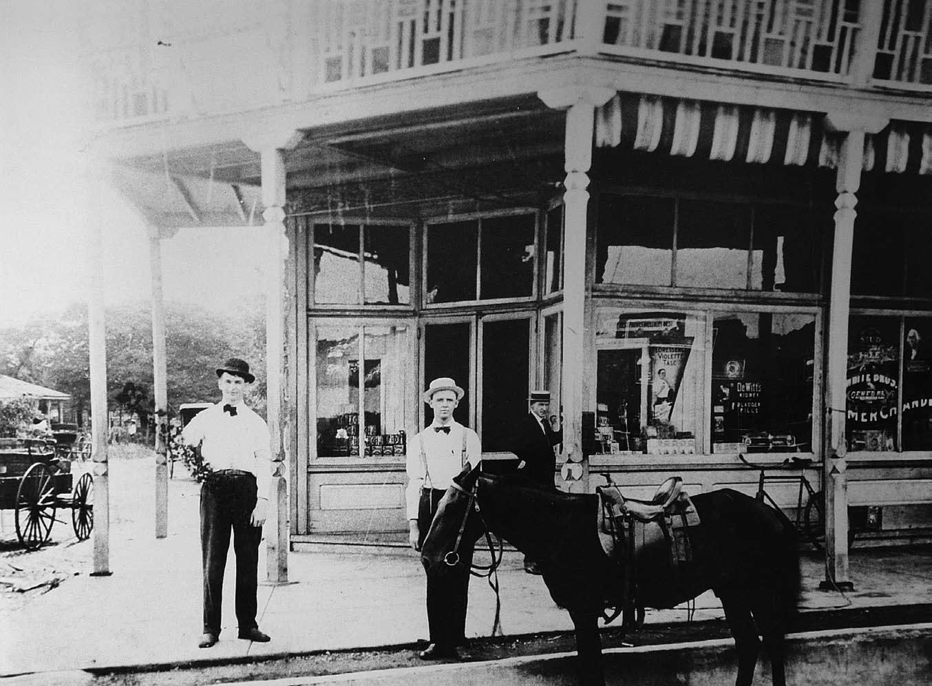 A downtown focal point, early twentieth century, was City Hall Square at the Sixth Street-Greensboro intersection. City Hall, itself, stood there, also the McLester Hotel, shown here in the background, and the ornate artesian well. Governed then by a mayor-alderman system, Tuscaloosa adopted a City Commission system in 1911. Improvements of that era included the first police force, 1900; paid fire department, 1915; numbered streets and houses, 1906; and traffic lights, 1930.