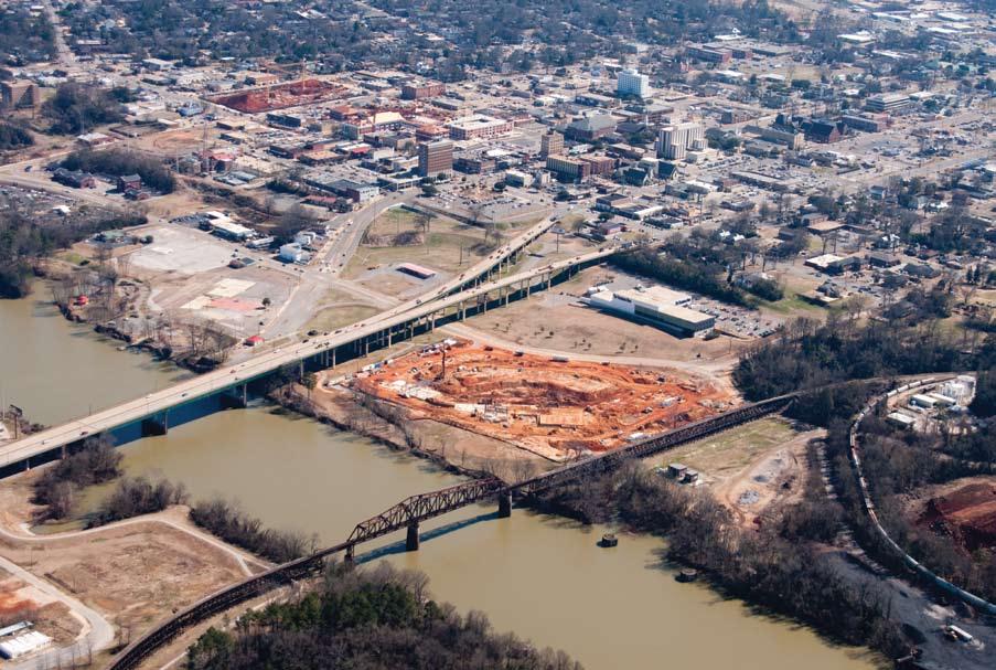 Perhaps in no era of its nearly two hundred years has Tuscaloosa proper had activity and action to match that of 2010. A riverside amphitheater is in bud on the western edge of downtown. East toward the University of Alabama, a United States federal courthouse is sweeping toward completion. City Hall additions that include a parking deck quicken government’s pulse. Restaurants, night spots and even a sidewalk hot dog vendor give residents and visitors new choices. The developing Riverwalk makes the Black Warrior more pleasurable. In short, seen from our riverboat, busy streets or the air, downtown is a delight!