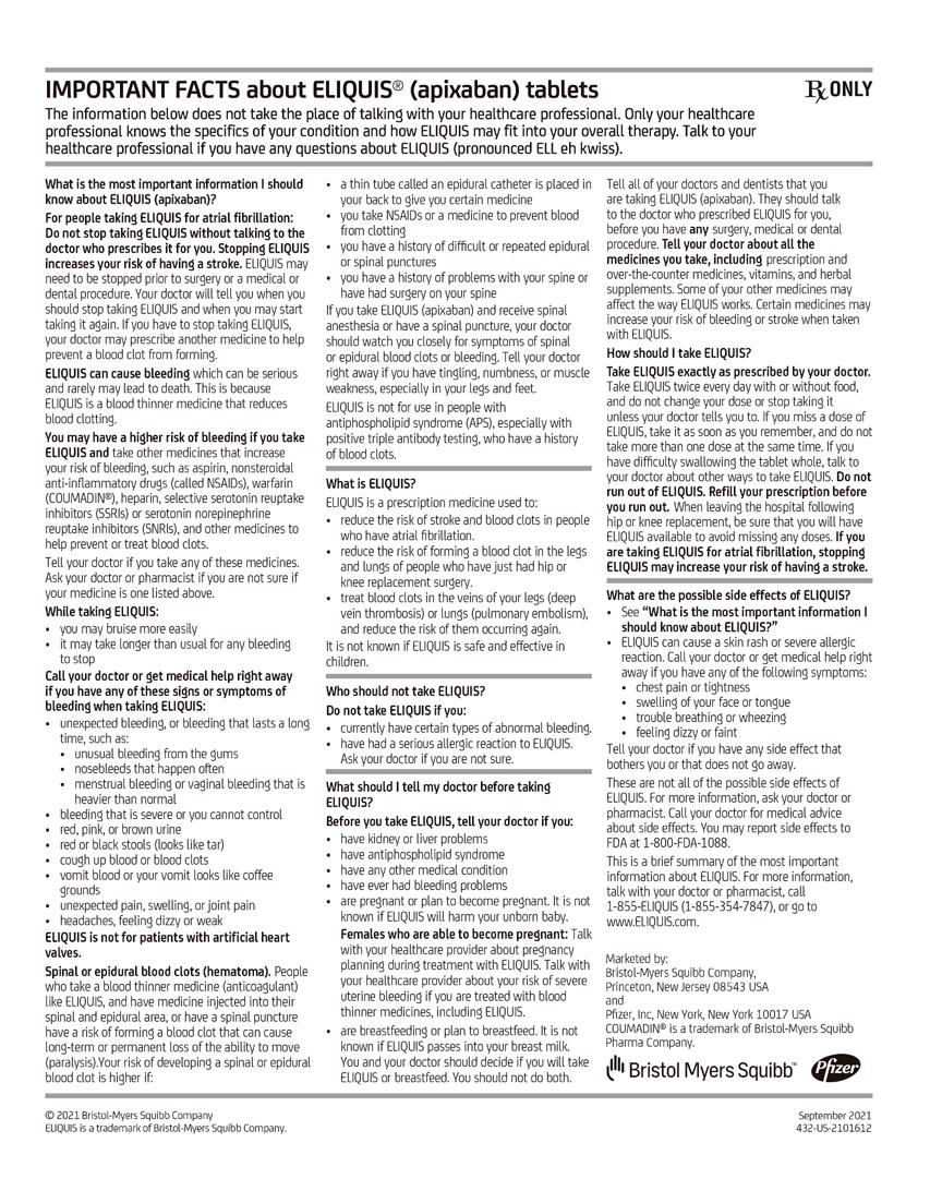 Pregúntele a su médico sobre ELIQUIS.