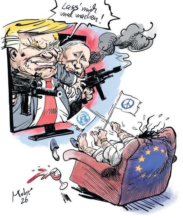 (BS) Ein seltenes, aber begrüßenswertes Schauspiel konnte die Weltöffentlichkeit Ende Januar beobachten. Nach Donald Trumps Drohung, die EU mit Strafzöllen zu belegen, sollten sie nicht den Verhandlungsprozess zum Aufkauf Grönlands einleiten, fanden die EUMitglieder eine klare gemeinsame Stimme. Auf einem Sondergipfel verurteilten die Regierungschefs das Vorgehen deutlich. Derart geschlossen darf man die Union aber nur selten erleben. Die Norm ist eine andere. Seit 1993 bekennen sich die Mitgliedsstaaten zu einer gemeinsamen Außen- und Sicherheitspolitik. Mit dem Vertrag von Lissabon aus dem Jahr 2009 ist zudem eine gemeinsame Verteidigungspolitik unter den Bündnispartnern vorgesehen. Doch an Fragen zur Sanktionierung Russlands, der militärischen Unterstützung der Ukraine oder der Aufnahme gemeinsamer Schulden für die Aufrüstung zerbricht die Einigkeit. Dann blockieren einzelne Staaten gemeinsame Maßnahmen. Die Besatzung des Trojanischen Pferdes innerhalb der Union wechselt dabei munter. Ein Gegenmittel, um trotzdem außenpolitisch mit mehr