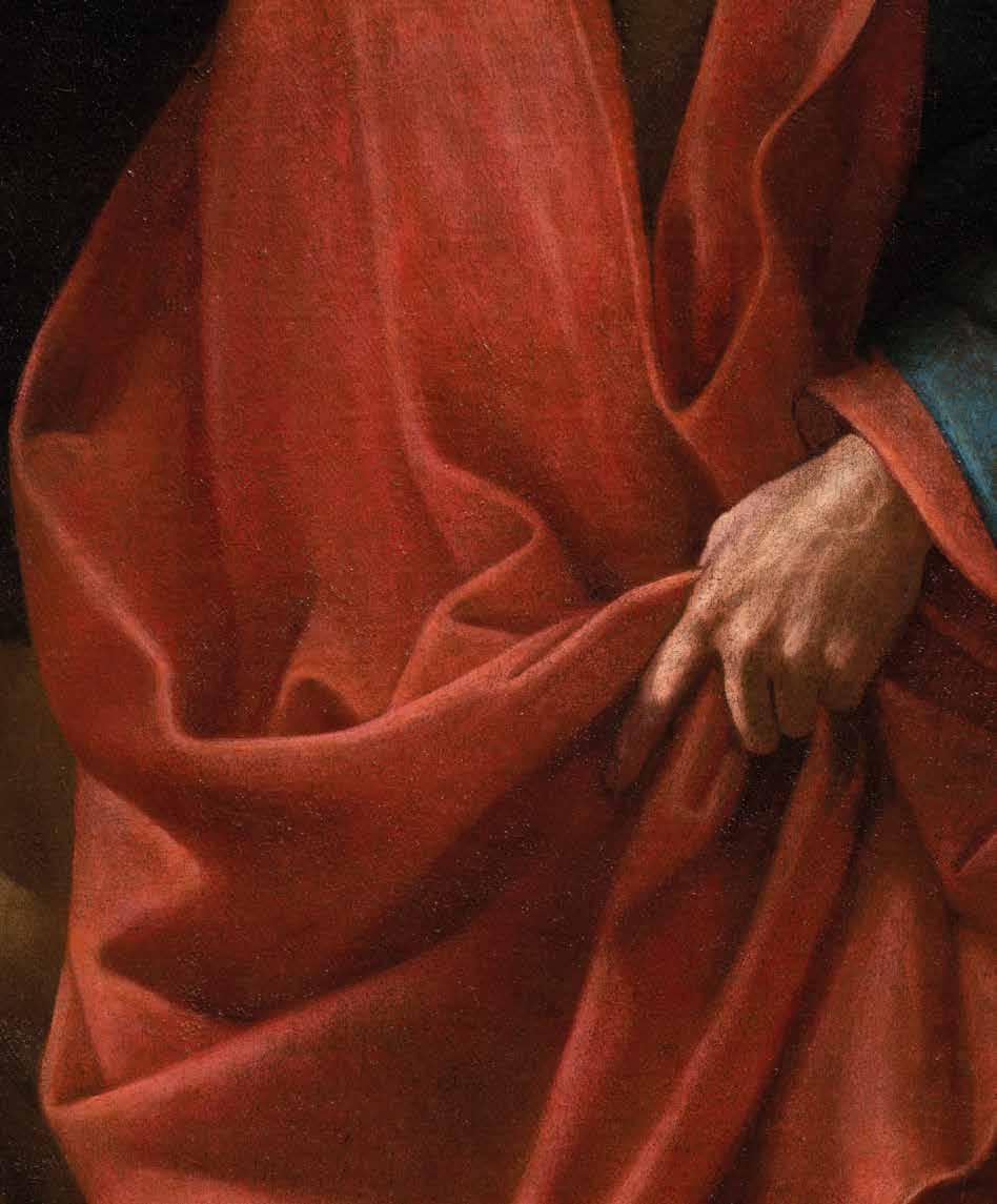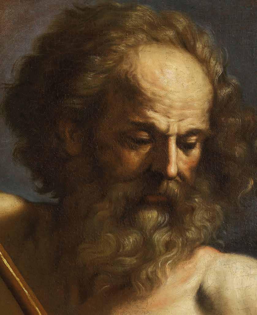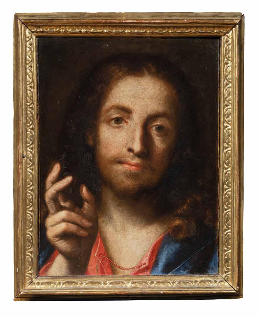 The sincere devotion emanating from the image in this excellently-conserved painting, as well as its refined style, allow us to identify the artist as Carlo Dolci. His talent for naturalism is evident in the realism of the hands, the red velvet book cover, the folds of the drapery, the slightly parted full lips, and finally in every single lock of the beard and hair.