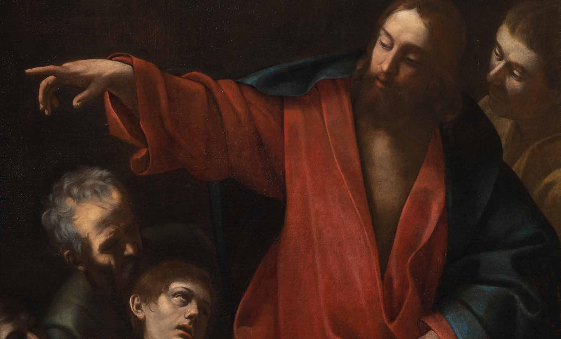 Guercino was active as an artist on several fronts; he certainly did not lack ecclesiastical commissions, including one of the most important, which must be mentioned here: the gigantic altarpiece dedicated to Santa Petronilla commissioned by Pope Gregorio XV for one of the altars in Basilica di San Pietro at the Vatican. Guercino’s brief Roman period, from 1621 to 1623, was for him an extremely important milestone from the artistic and personal points of view. During that time, he had opportunities to engage with compatriots like Francesco Albani and Giovanni Lanfranco, and above all to familiarize himself with the sculpture of the young Gian Lorenzo Bernini and with the first wave of Caravaggesque painters who were all the rage in Rome in that third decade of the century. Although always true to himself - an extremely important point in that he never betrayed his own art and essence -, Guercino grafted these influences into his style, enhancing it with deep dark zones, unexpected flashes of light, the bravado and boldness of his figures’ bearing, and the irrepressible touch of a paint-laden brushstroke. And still, throughout his career the artist managed to maintain the melancholy of textural-blue dusks shot through with lapis lazuli and the harsh whites of a frosty dawn or late eventide: horizons that could carry the viewer away, enfolded in their hazy blueish light. This painting gives us a taste of that atmosphere: fraught with energy in the foreground and serene in the background, it strikes every chord of our thoughts and emotions.