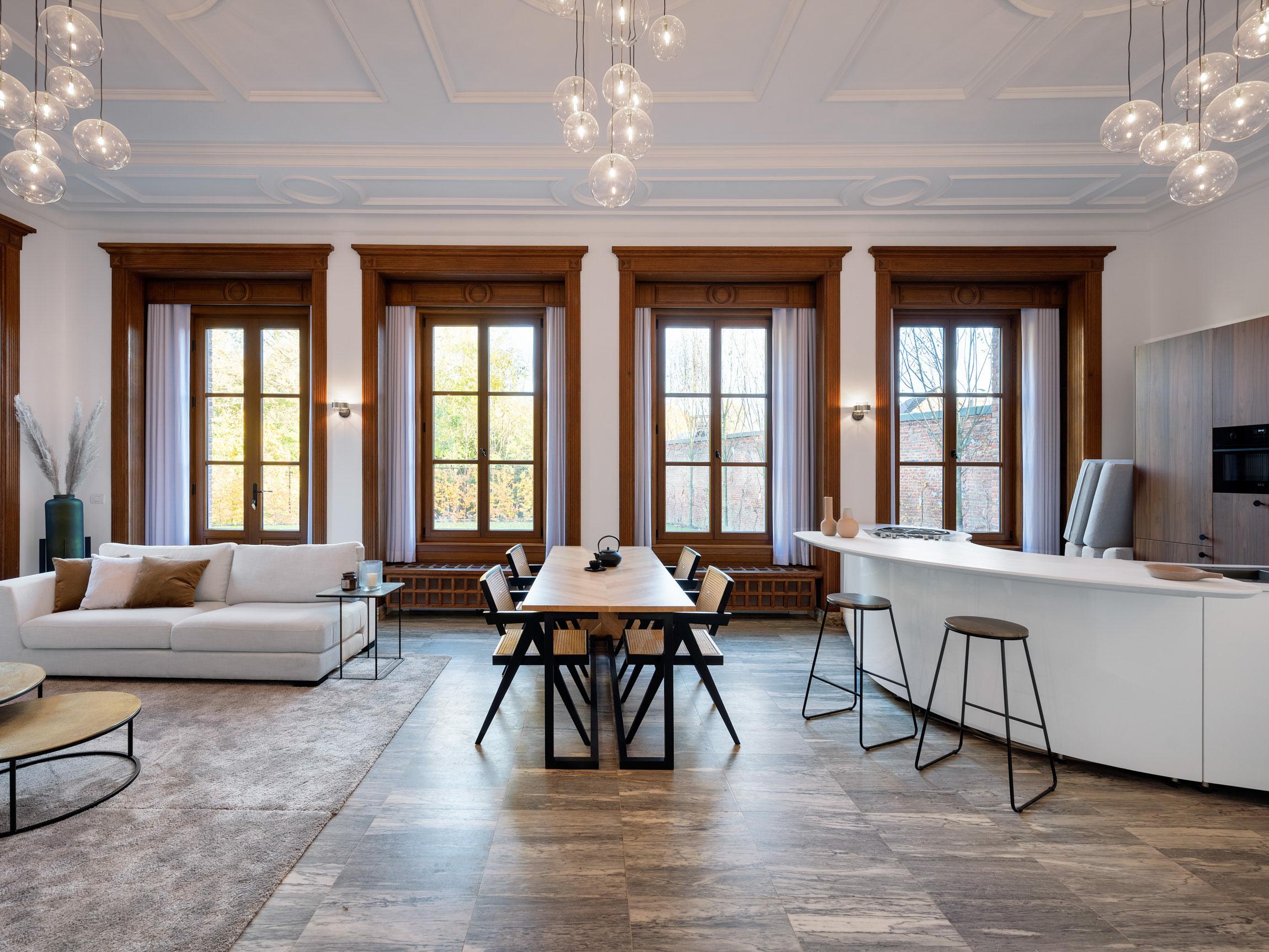 In Burcht,closeto the vibrant city of Antwerp,the 1912 castleVilla Hortensia has been renovatedand transformed into 9 different apartments in a middleof apark
